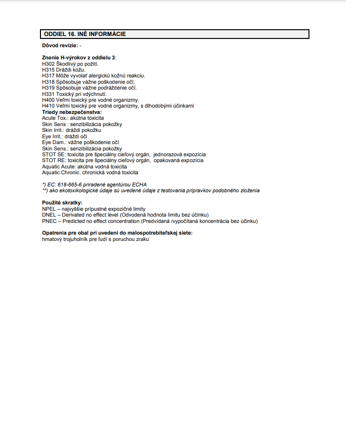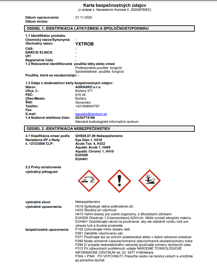 Karta Bezpečnostných Údajov - Yxtrob
